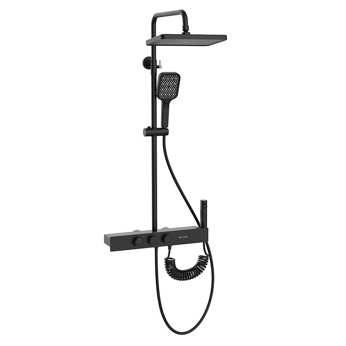 Gray thermostatic shower system, it is the perfect addition to your bathroom oasis. This square head hybrid shower offers a luxurious and energizing experience, seamlessly combining functionality and style. With its thermostat feature, you can enjoy consistent water temperature every time, providing a safe and comfortable shower experience.